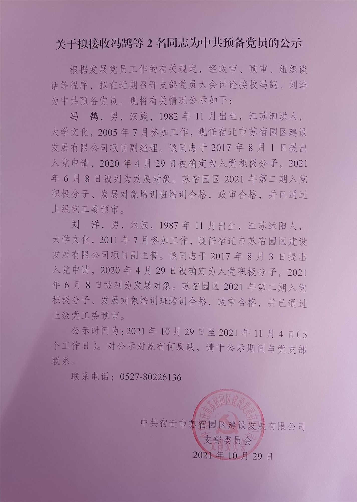 關于擬接收馮鵠等2名同志為中共預備黨員的公示