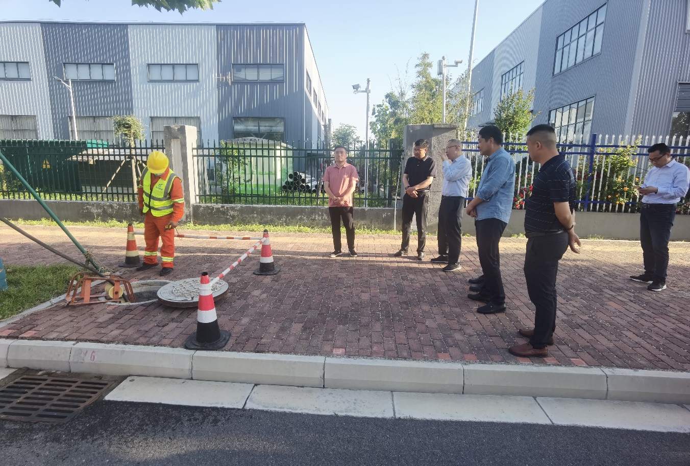 在鏡泊湖路疏通作業(yè)現(xiàn)場(chǎng),檢查組認(rèn)真聽(tīng)取了園區(qū)汛前排水防澇工作進(jìn)展情況匯報(bào),并詳細(xì)詢問(wèn)了園區(qū)汛前管道疏通、檢測(cè)及維修相關(guān)情況。