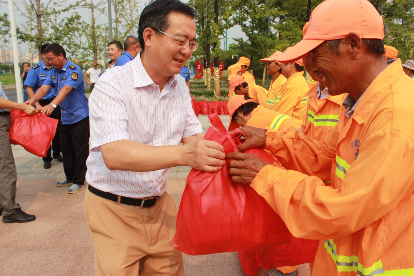 8月6日下午,市政府黨組成員、園區(qū)黨工委書(shū)記、管委會(huì)主任馮建林帶隊(duì)親切慰問(wèn)了奮戰(zhàn)在一線(xiàn)的城市維護(hù)作業(yè)人員,給他們送去防暑降溫用品,感謝他們?yōu)閯?chuàng)造園區(qū)整潔、優(yōu)美城市環(huán)境作出的貢獻(xiàn)。