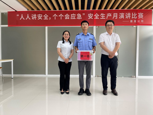 今年6月是第22個全國“安全生產(chǎn)月”,為進一步推動安全文化建設,提高廣大員工安全意識,營造安全和諧的生產(chǎn)環(huán)境和安全文化氛圍,6月16日,建發(fā)公司組織安保單位開展了“人人講安全,個個會應急”主題演講比賽。