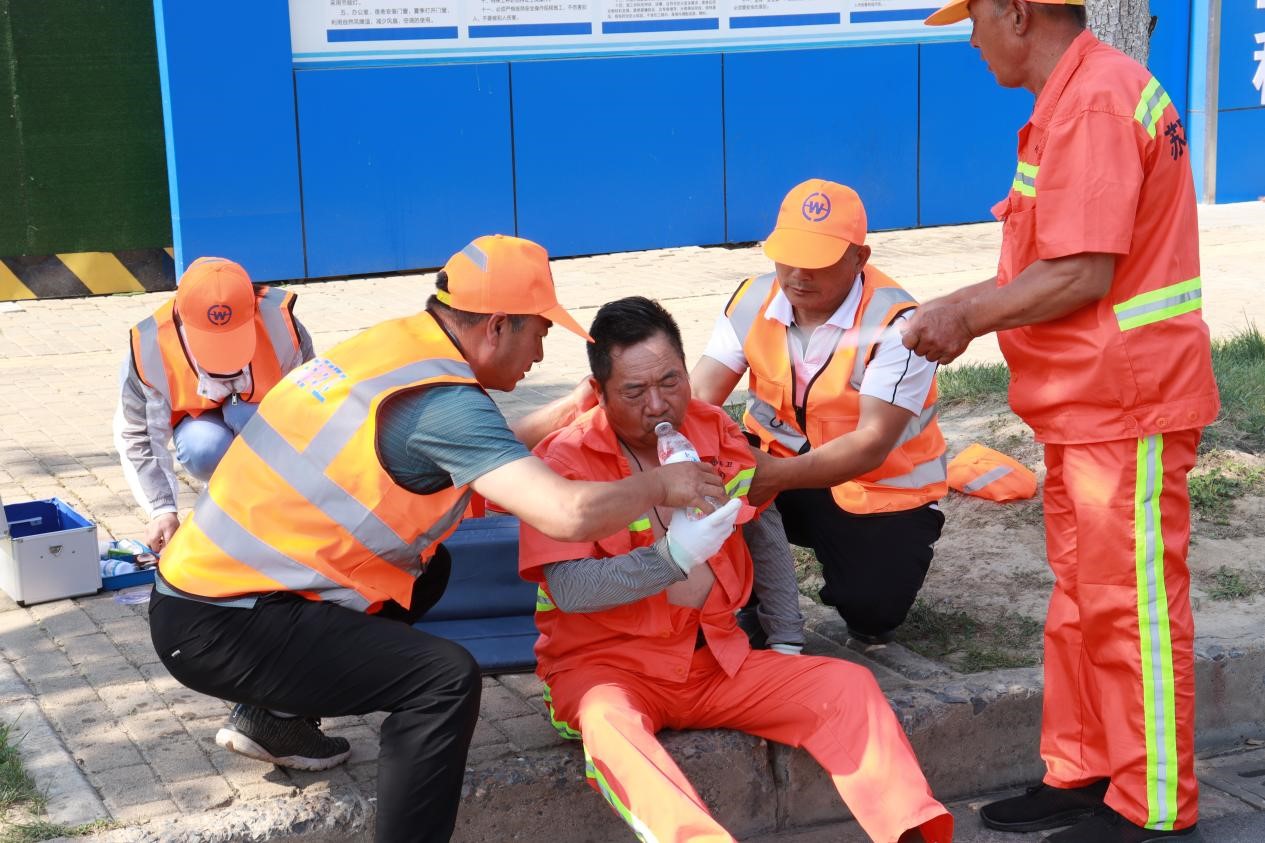 高溫防暑是城市維護(hù)作業(yè)的一堂必修課,為做好高溫天氣安全防范工作,有效提升一線作業(yè)人員應(yīng)急處置和自救互救能力,營造“人人講安全、個(gè)個(gè)會(huì)應(yīng)急”的安全氛圍,6月14日下午,建發(fā)公司組織開展城市維護(hù)項(xiàng)目高溫中暑應(yīng)急演練,所有城市維護(hù)作業(yè)單位參與演練。